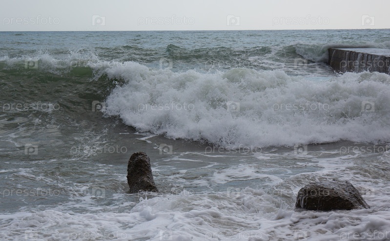 Весенний шторм на южном берегу Крыма в Черном море