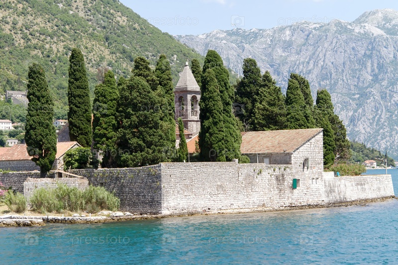 Остров Бока-Которска в Которском заливе, Черногория летом