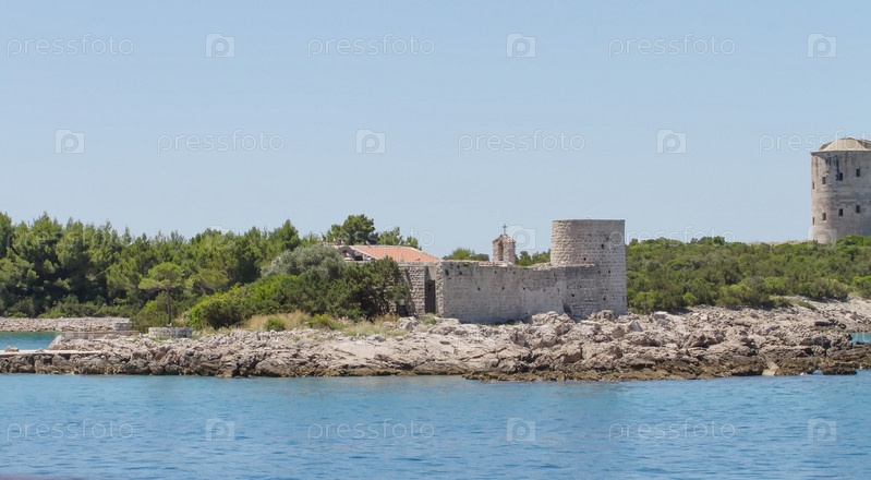 Побережье острова Брач в Хорватии. Вид с моря летом