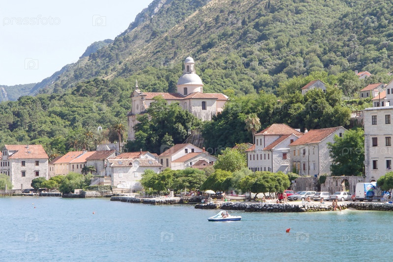 Старый город Пераст на берегу Которского залива, Черногория летом