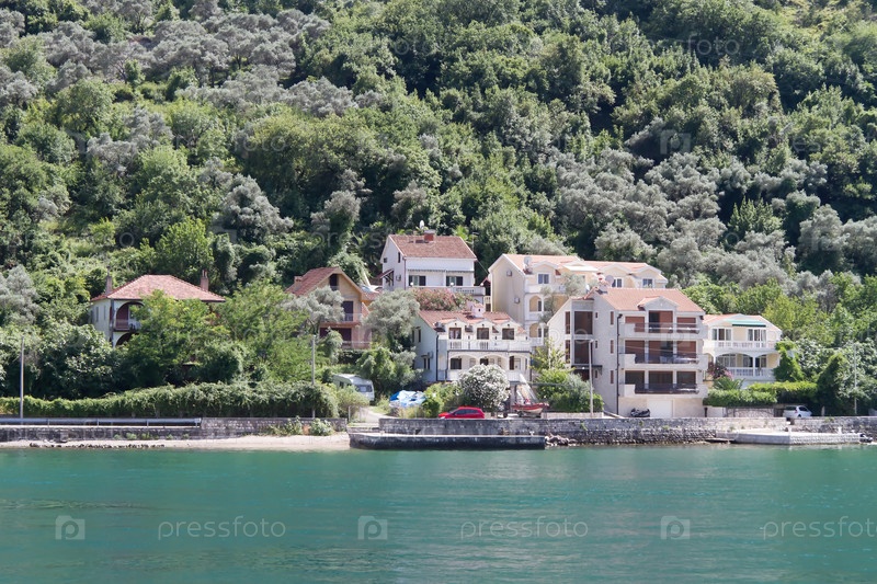 Курорт на берегу Которского залива в Черногории летом