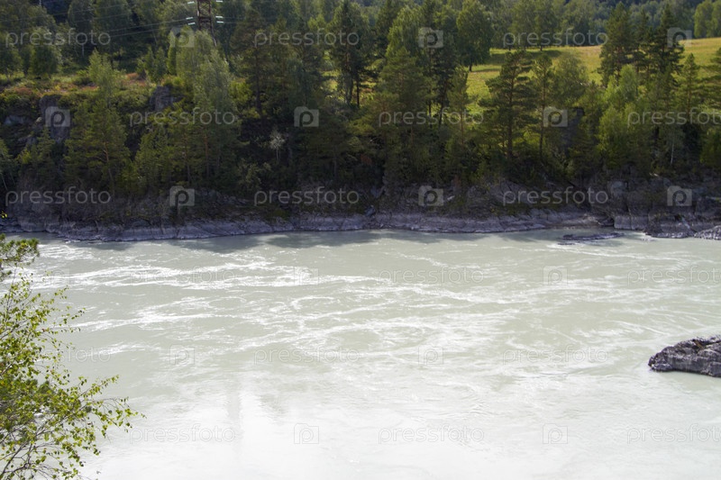 Красивые виды с горы на реку Катунь в Горном Алтае, Россия