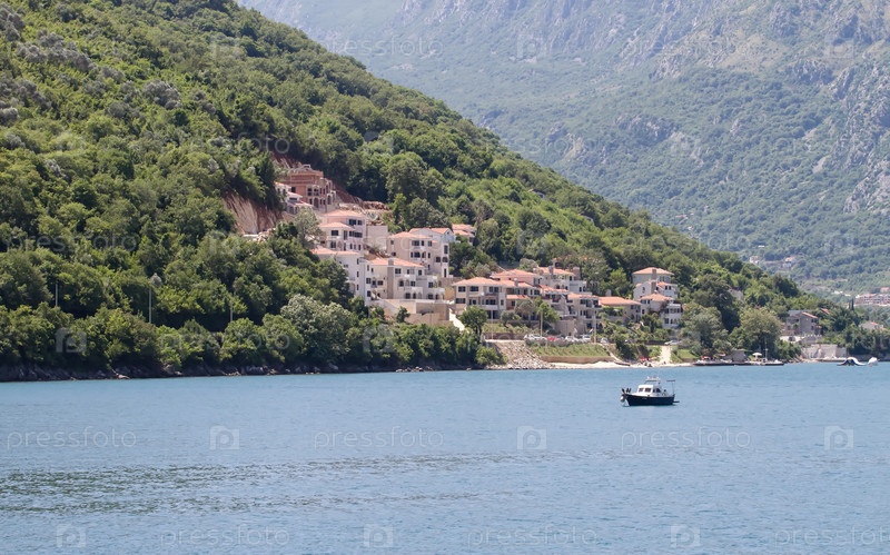 Береговая линия Которского залива в Черногории, Балканах, Европе летом