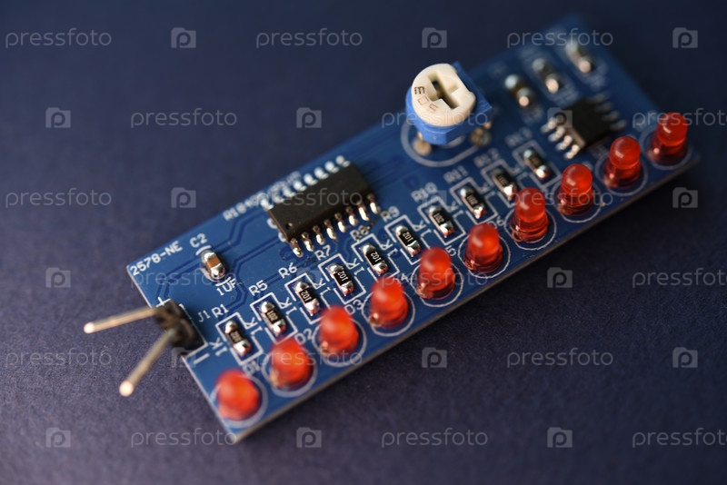 Печатная плата с радиоэлементами. Светодиоды и чипы. Набор для пайки радиолюбителя