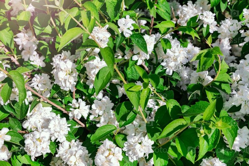 Чубушник Иволистный. Цветущие цветы в саду
