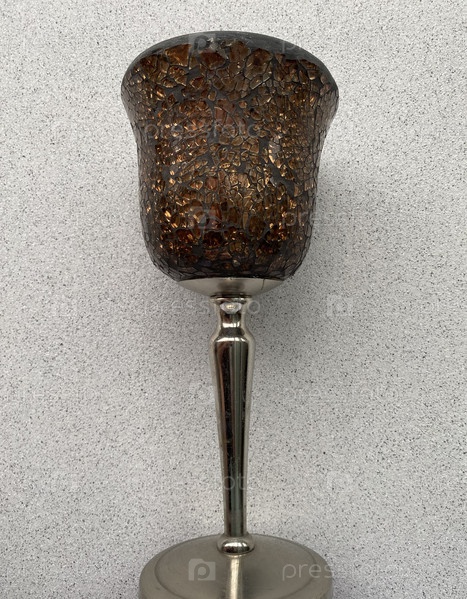 Металлический бокал для вина. Цвет серебристый, вид сбоку