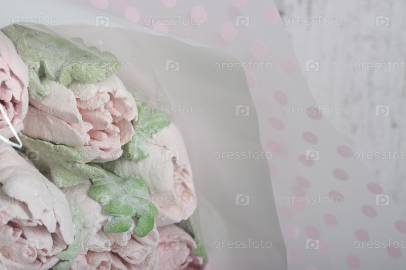 Зефирные букеты. Зефирные цветы. Зефирные тюльпаны. Домашний зефир. Селективный фокус. Крупный план