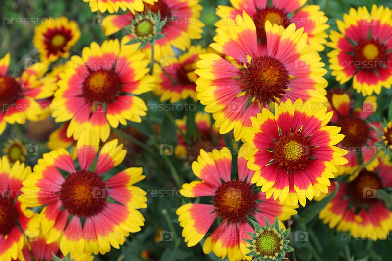 Цветущая гайлардия (гибрид) на клумбе в яркий солнечный день