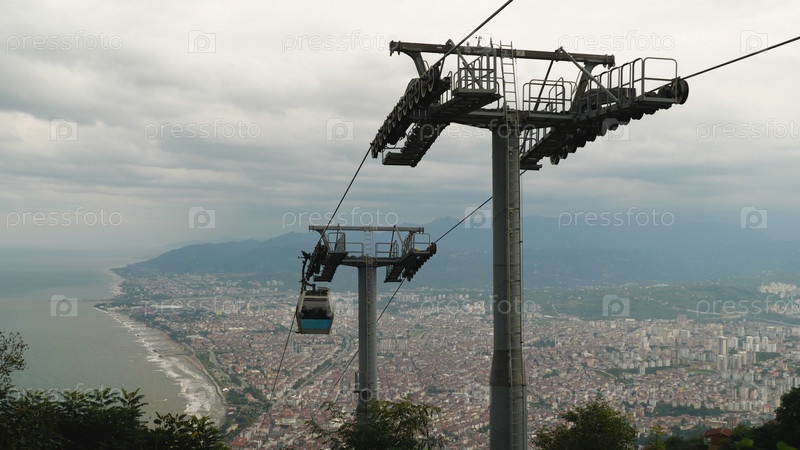 Вид с канатной дороги Орду-Бозтепе. Захватывающий вид на залив, город и горы за его пределами. Путешествие по Турции, вдоль побережья Черного моря