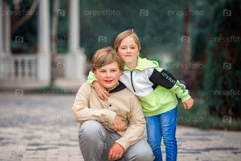 Два брата, два молодых красивых мальчика европейской внешности, с удовольствием проводят время на улице. Это прекрасное время, чтобы расслабиться