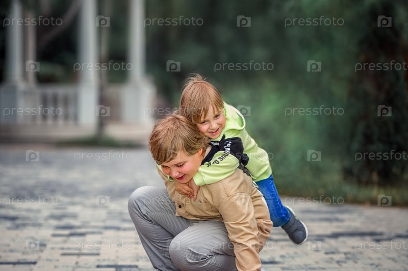 Два брата, два молодых красивых мальчика европейской внешности, с удовольствием проводят время на улице. Это прекрасное время, чтобы расслабиться
