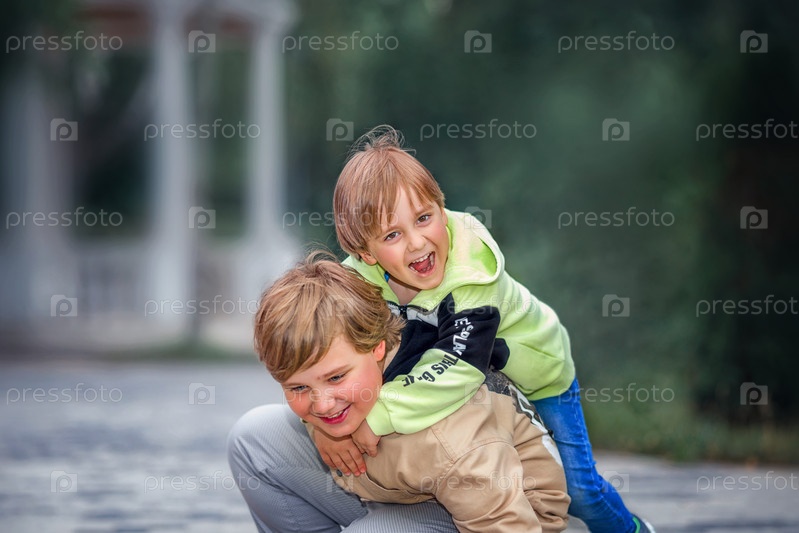 Два брата, два молодых красивых мальчика европейской внешности, с удовольствием проводят время на улице. Это прекрасное время, чтобы расслабиться