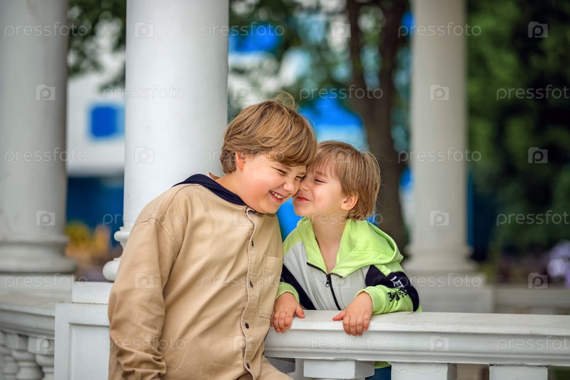 Два брата, два молодых красивых мальчика европейской внешности, с удовольствием проводят время на улице. Это прекрасное время, чтобы расслабиться