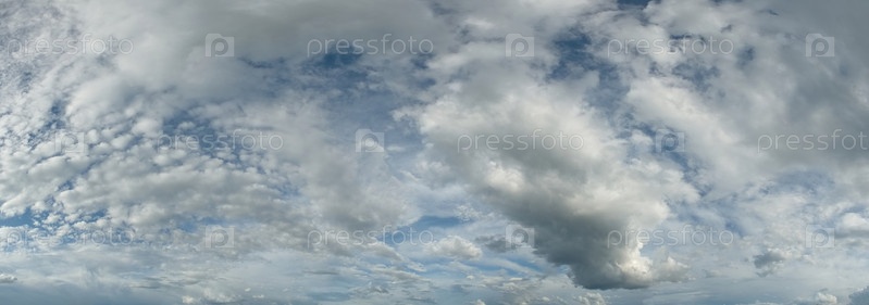 Россия. Юг Западной Сибири. Панорама дневного летнего неба с кучевыми облаками над полями Кузнецкого Алатау