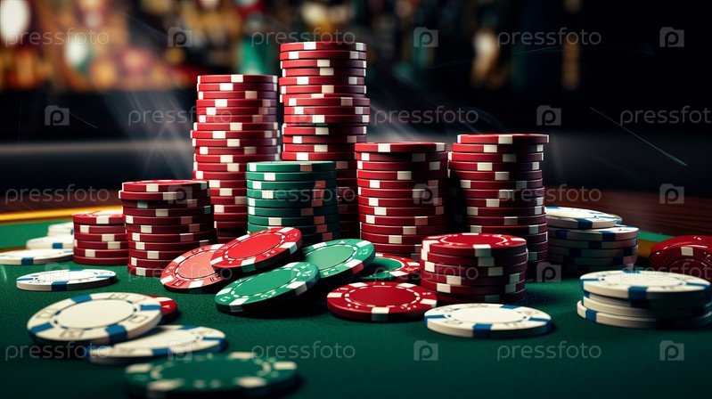 Покерные фишки на игровом столе с эффектным освещением