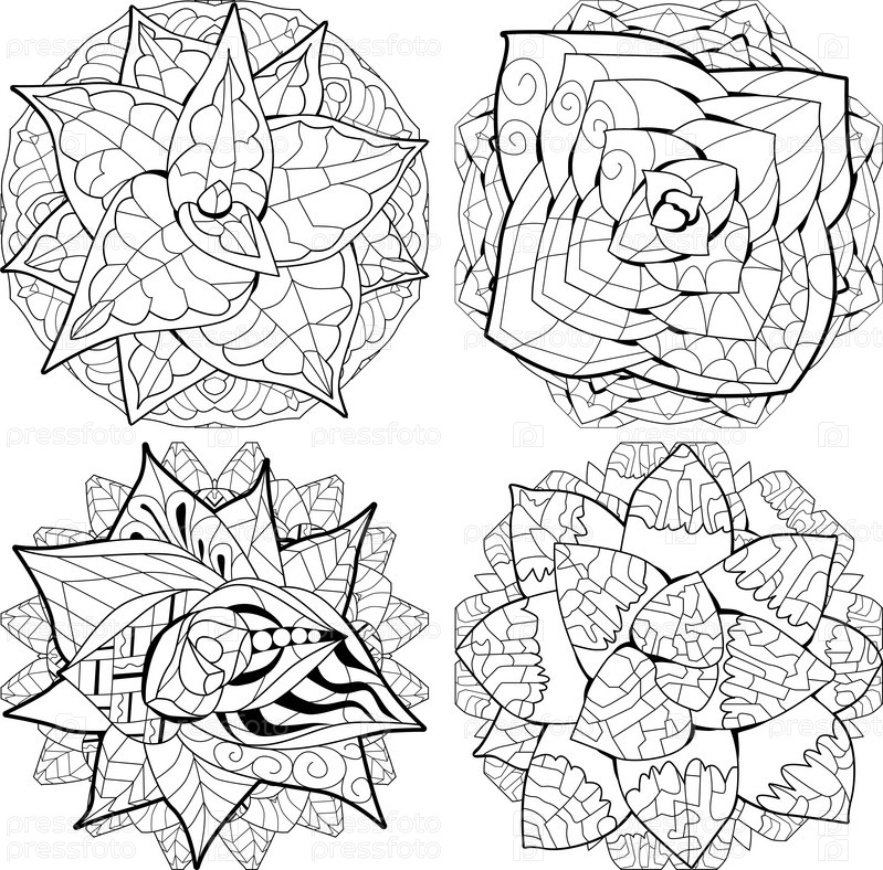 Набор комнатных растений суккулентов на мандале для раскраски. Форма печати домашнего растения городской тропический декор джунглей