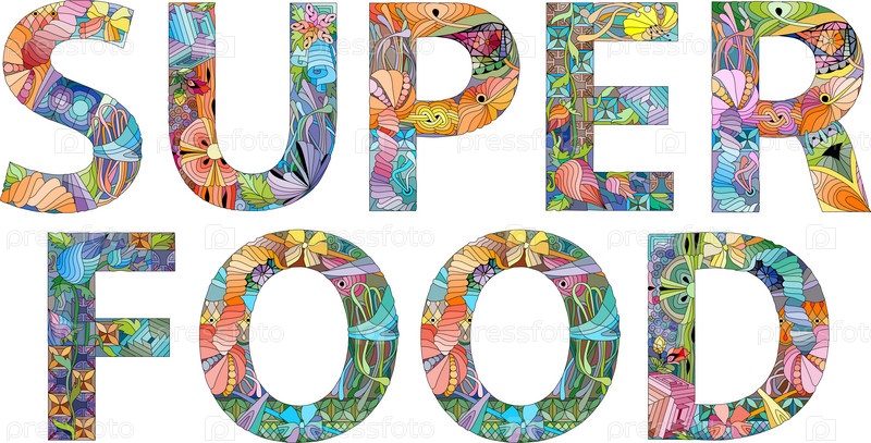 Ручная роспись художественного дизайна.Ручно нарисованные иллюстрации слов SUPER FOOD для футболок и других украшений