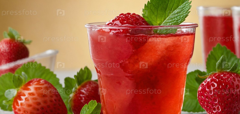 Клубничный сок с ягодами и мятой
