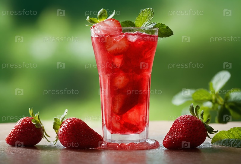 Клубничный сок с ягодами и мятой