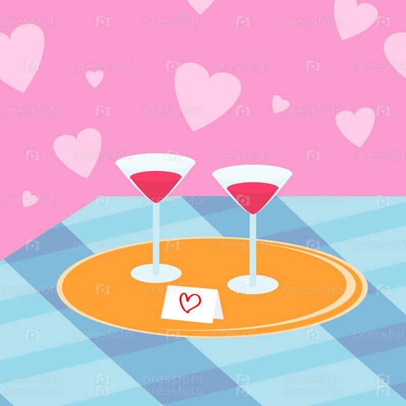 Романтическое свидание для двоих - бокалы на подносе и валентинка