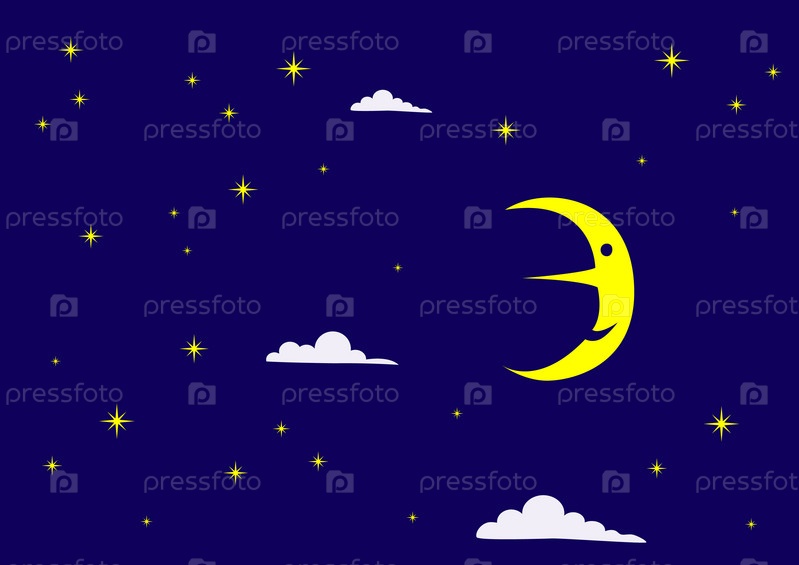 Ночное небо и месяц в детском мультяшном стиле