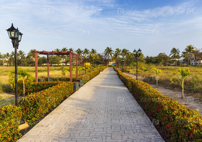 Вид аллеи в саду. На открытом воздухе