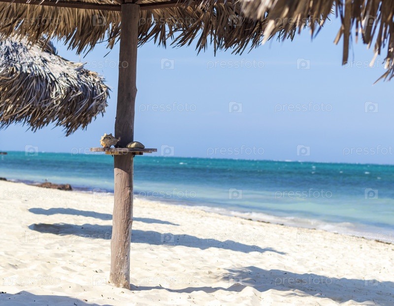 Крупный план пляжных зонтиков из пальм. Праздничный день