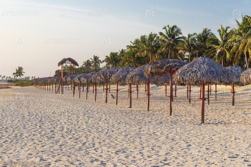 Крупный план пляжных зонтиков из пальм. Праздничный день