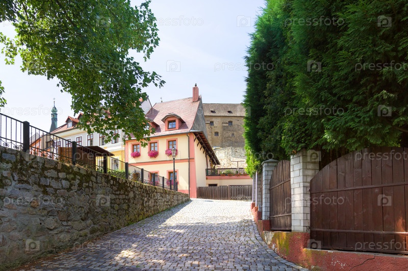 Красивая уютная улица города. Локет, Чехия