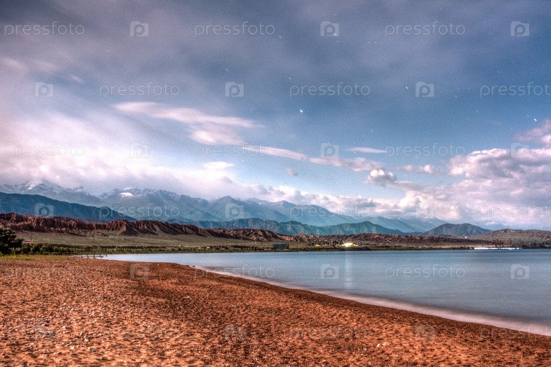 Ночной вид на звезды, горное озеро, выборочный фокус,