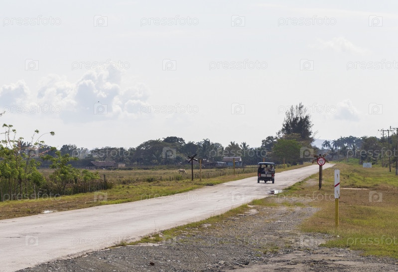 03.03.2024 - Камагуэй, Санта-Люсия, Куба - Трехколесный скутер работал на природном газе по дороге. Транспорт