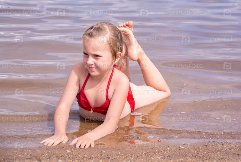 В жаркий летний день ребенок отдыхает на озере. Девочка на пляже. В знойный летний день ребёнок расслабляется у озера