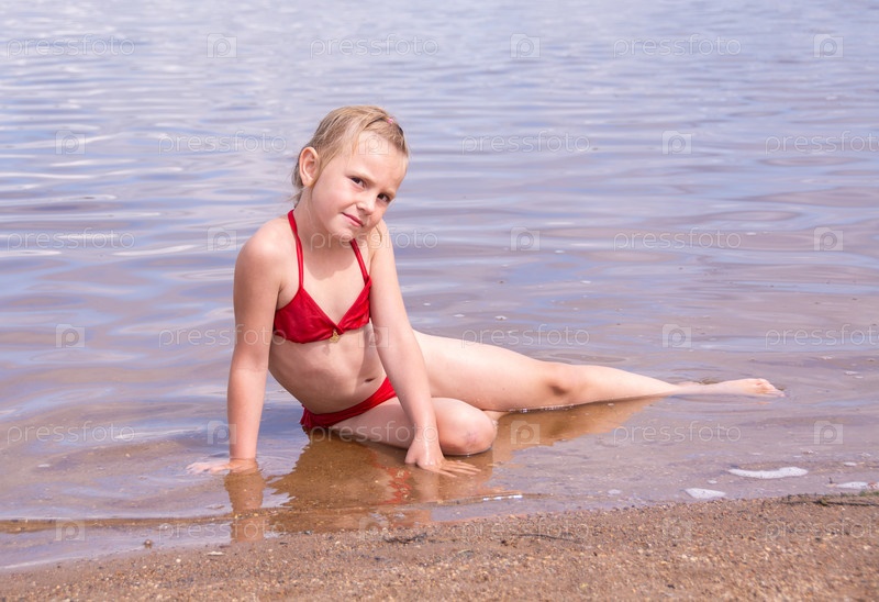 В жаркий летний день ребенок отдыхает на озере. Девочка на пляже. В знойный летний день ребёнок расслабляется у озера