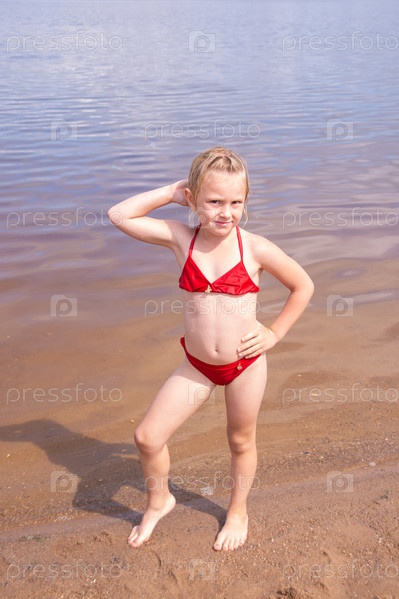 В жаркий летний день ребенок отдыхает на озере. Девочка на пляже. В знойный летний день ребёнок расслабляется у озера