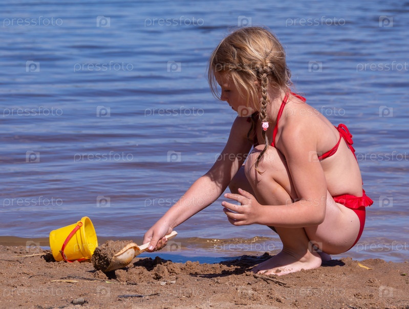В жаркий летний день ребенок отдыхает на озере. Девочка на пляже. В знойный летний день ребёнок расслабляется у озера