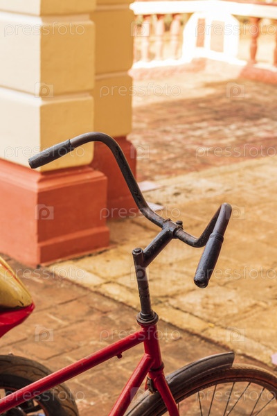 Концептуальный снимок рулевого управления старого велосипеда. Транспорт