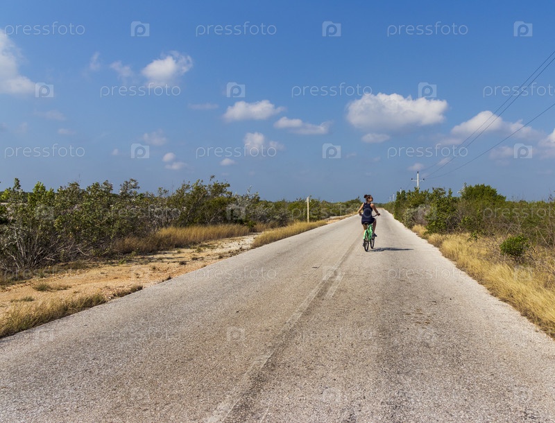 Турист, совершающий велосипедную поездку по острову Кайо-Коко, Куба. Путешествовать