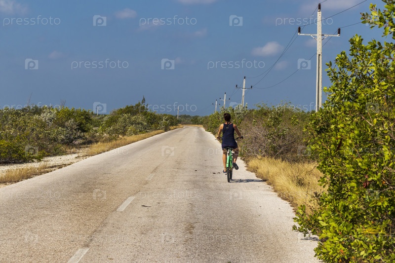 Турист, совершающий велосипедную поездку по острову Кайо-Коко, Куба. Путешествовать