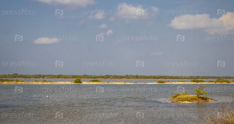 Выстрел фламинго в озере. Природа