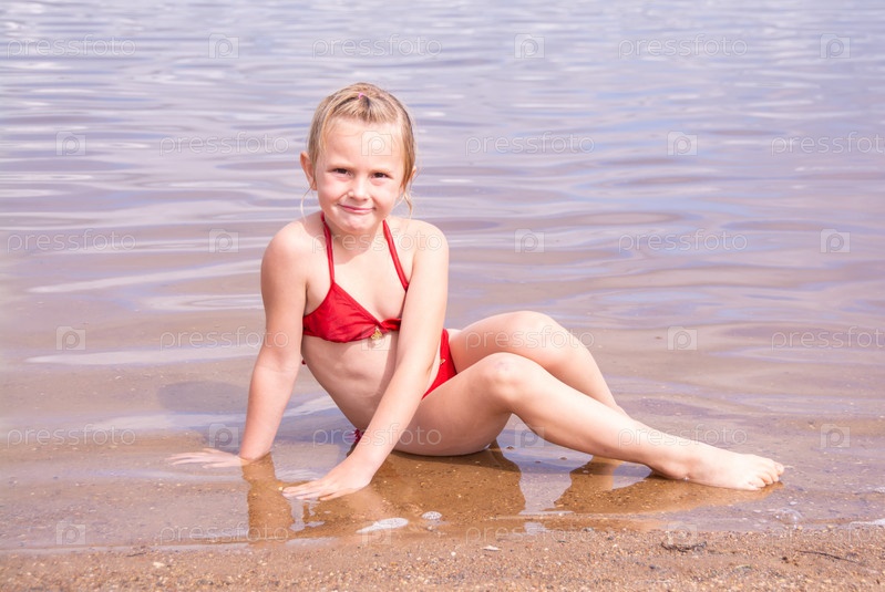 В жаркий летний день ребенок отдыхает на озере. Девочка на пляже. В знойный летний день ребёнок расслабляется у озера