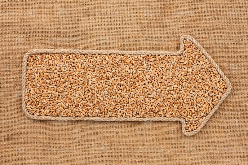 Показатель, сделанный из веревки с зерном пшеницы, лежащим на мешке, с местом для вашего текста
