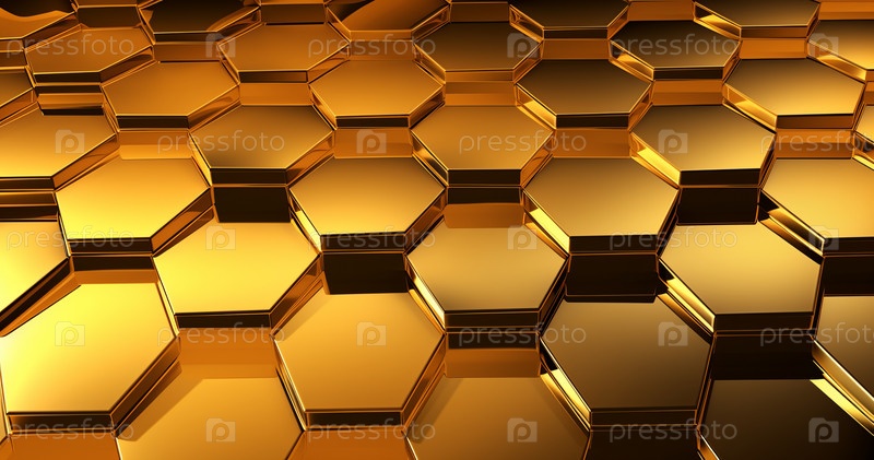 Золотая шестиугольная плитка в роскошном интерьере Золотые металлические соты