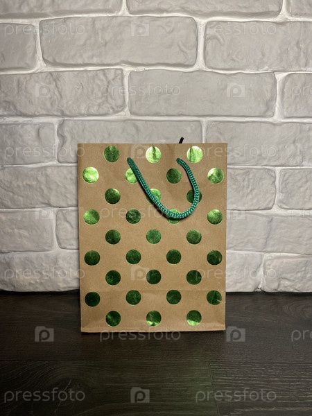 Бумажный пакет с ручками, макет для вашего проекта. Вид сбоку
