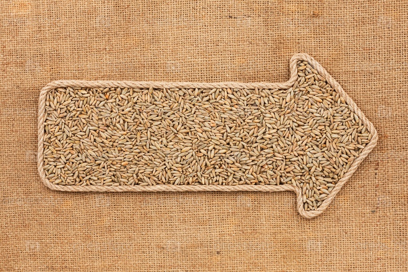 Показатель, сделанный из веревки с зернами ржи, лежащими на мешке, с местом для вашего текста