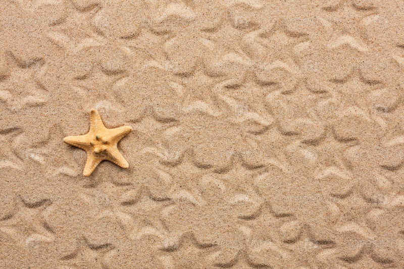 Морская звезда и ее отпечатки на песке в качестве фона
