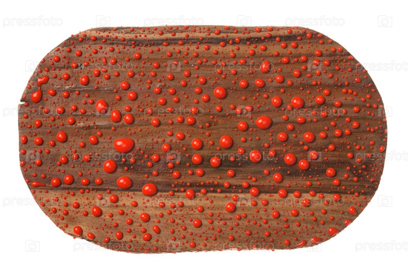 Старая деревянная доска в капельках красной краски. рисунок выделен на белом фоне. old wooden board in the drops of red paint. isolated
