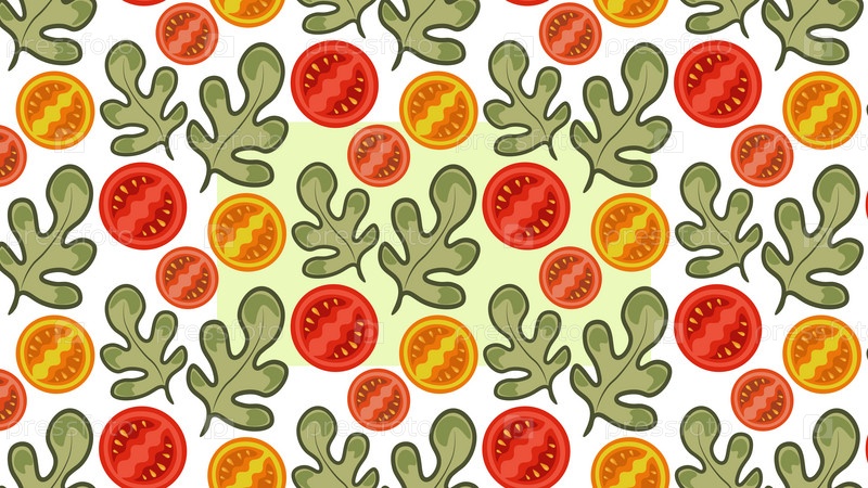Прямоугольный фон с повторяющимся узором из томатов и листьев рукколы