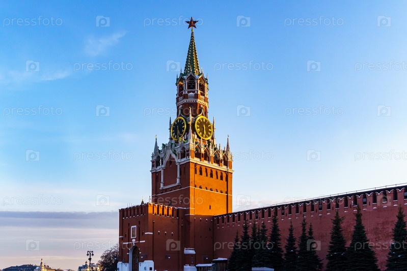 Кремлевская стена и Спасская башня. Красная площадь. Москва
