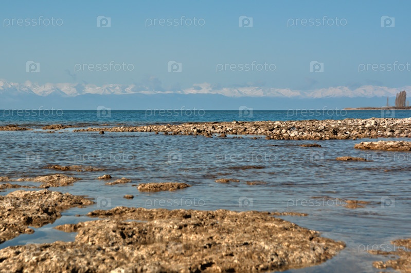 Озеро Иссык-Куль, город Чолпан-Ата, Киргизия. Селективный фокус