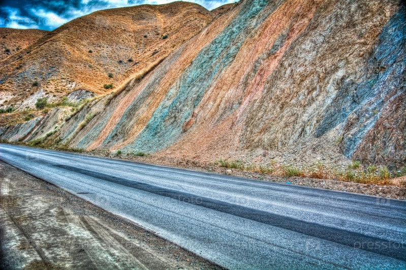 Разноцветная скала в горах Кыргызстана, выборочный фокус